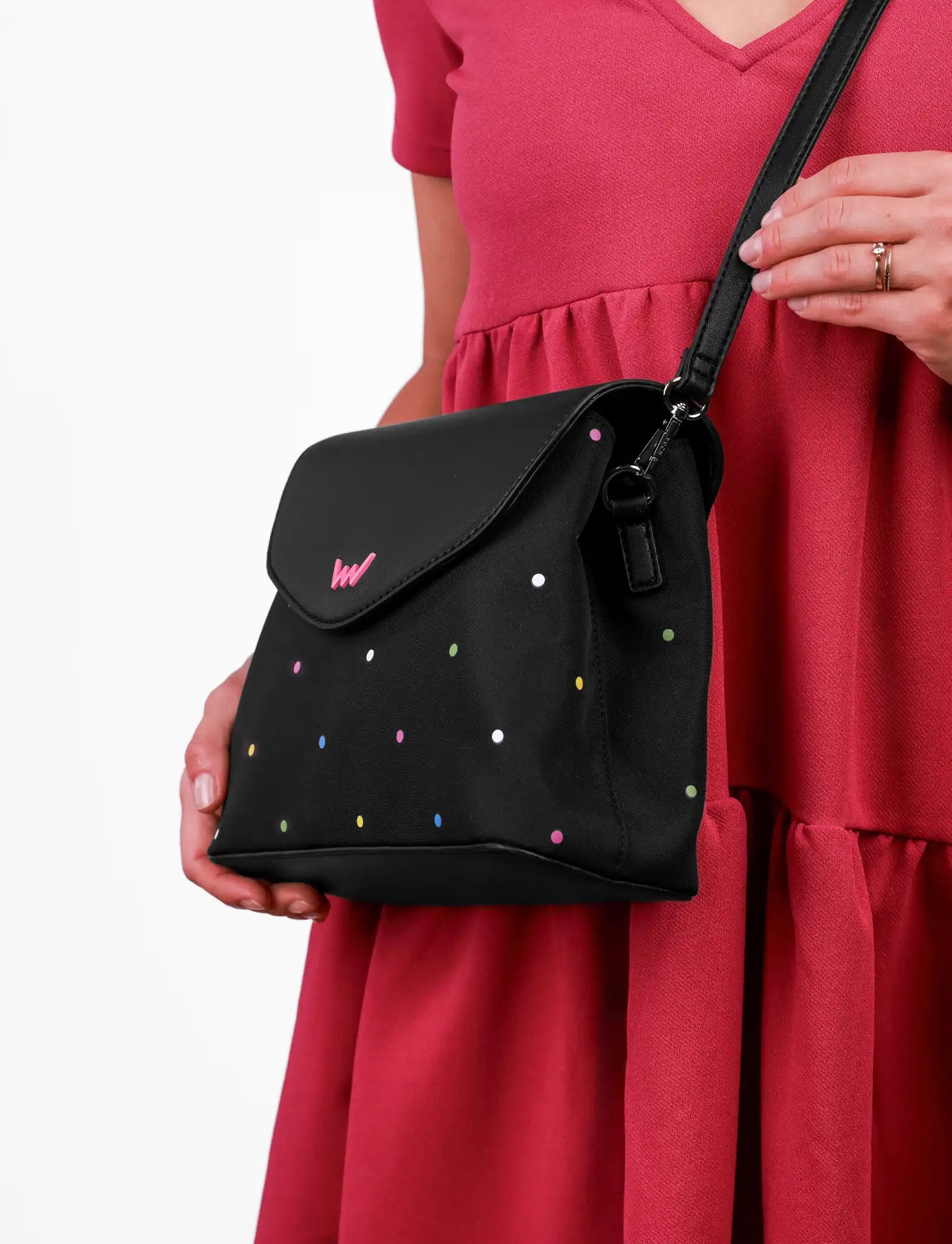 I pois e il mix di materiali rendono la borsa Byrsy Dotty un accessorio che cattura l’attenzione a prima vista. Due pratici scomparti, una chiusura sicura e una tracolla comoda la trasformano in una compagna affidabile ma allo stesso tempo giocosa per ogni giorno. È una borsa che non ti farà mai confondere con la folla.