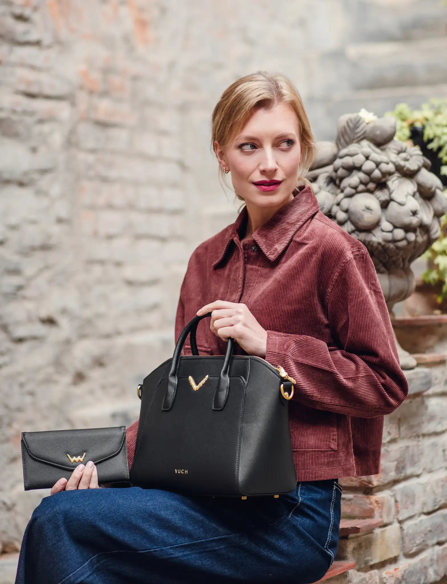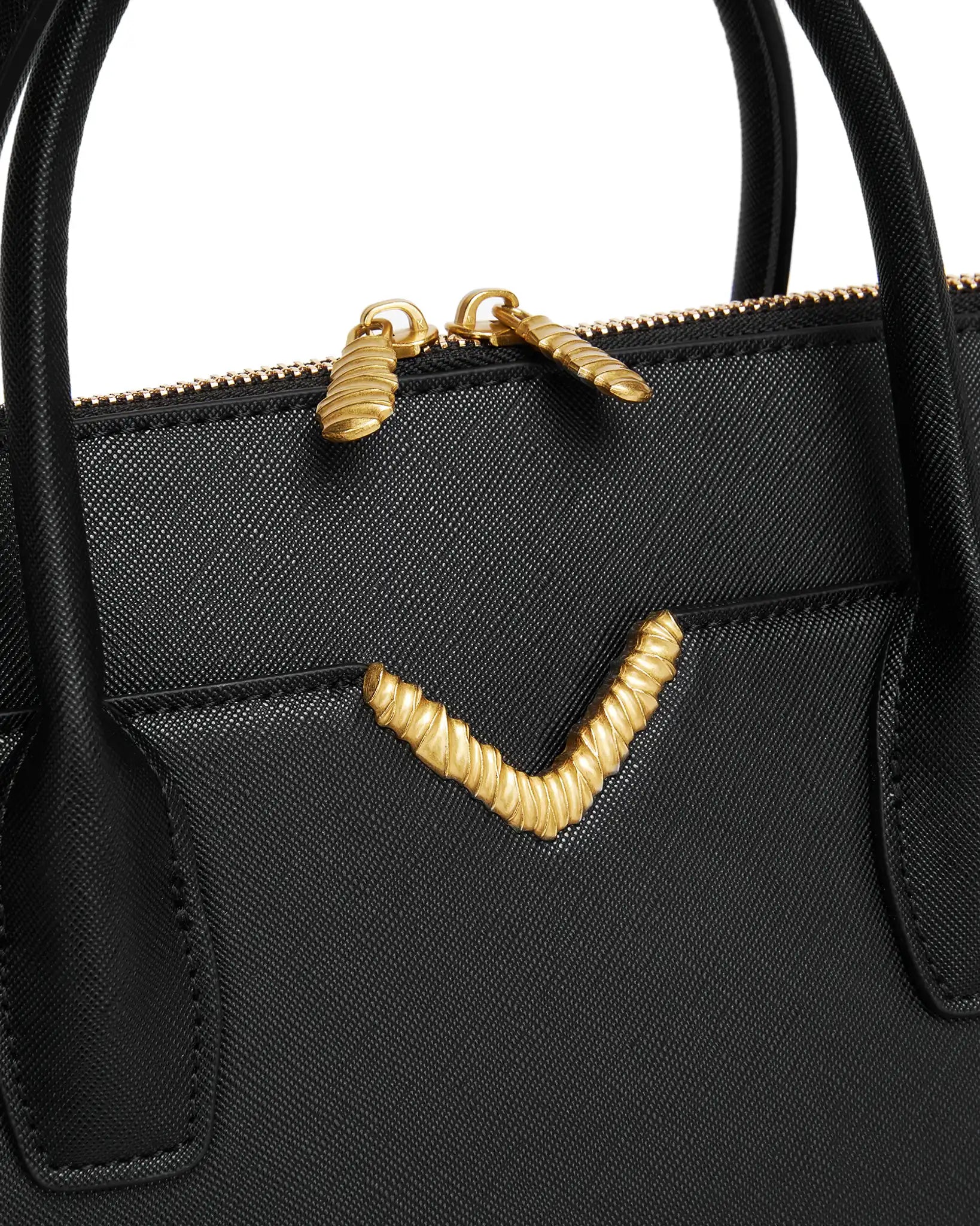 La sua forma strutturata mantiene lo stile in tutte le circostanze e i dettagli dorati la rendono la regina di ogni outfit. Che tu la porti a mano o a spalla, sarà sempre un ornamento e una gioia.