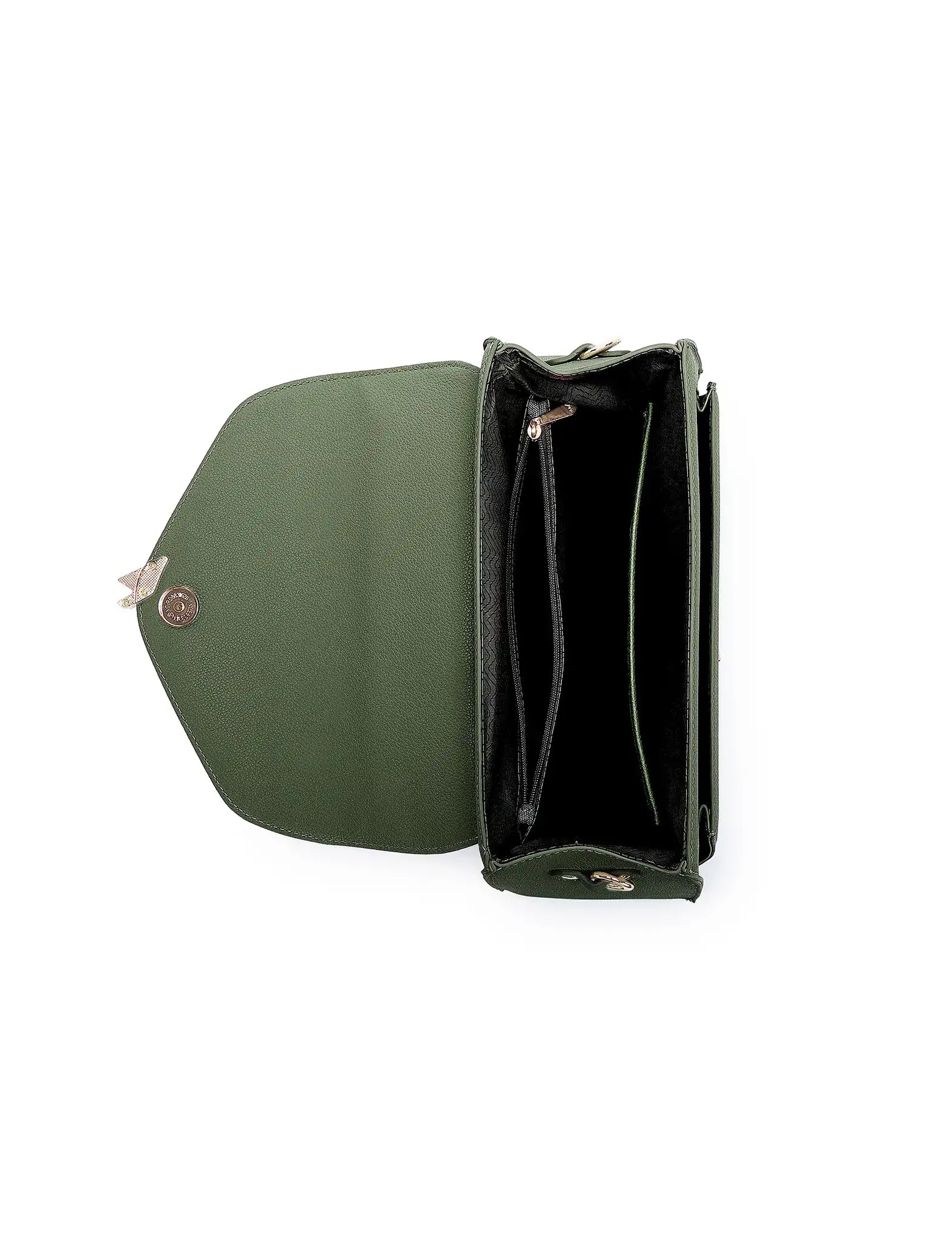 Chiusura dello scomparto principale con zip e patta con elegante fermaglio magnetico