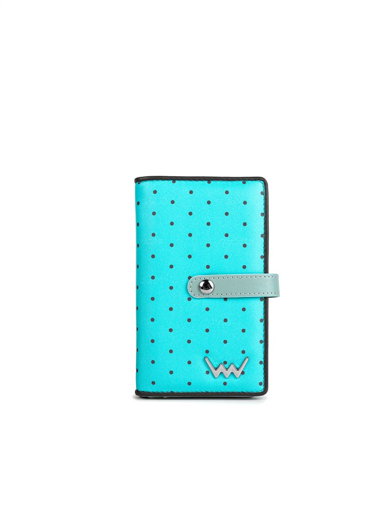 „O naší slabosti pro puntíky asi víš. A koukáme, že ty už v tom taky pěkně lítáš. Tak se nech unést s touhle modrou kráskou. Ona totiž není jenom neodolatelně pěkná, je i dost praktická. Má pásek se cvočkem, díky kterému se ti peněženka sama neotevře. Drobáky jsou pěkně pod zipem, takže žádné vykutálenosti. A toho prostoru pro všechny tvé karty!“