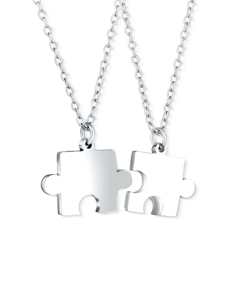 Párové náhrdelníky ve tvaru puzzle, které dávají smysl teprve spolu. Jeden patří Tobě, druhý někomu, kdo je Tvým dokonalým doplňkem. Kamarádce, partnerovi nebo komukoliv, kdo do Tvého života zapadá tak přesně, že to není náhoda.
