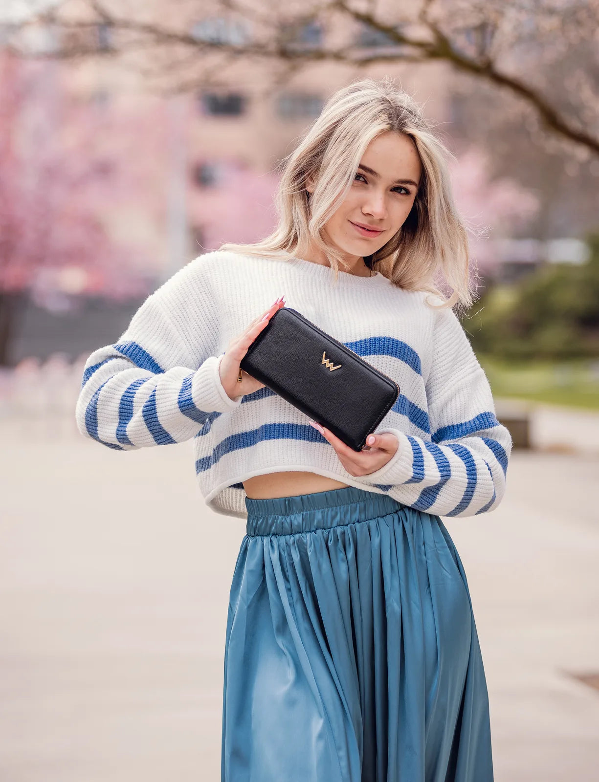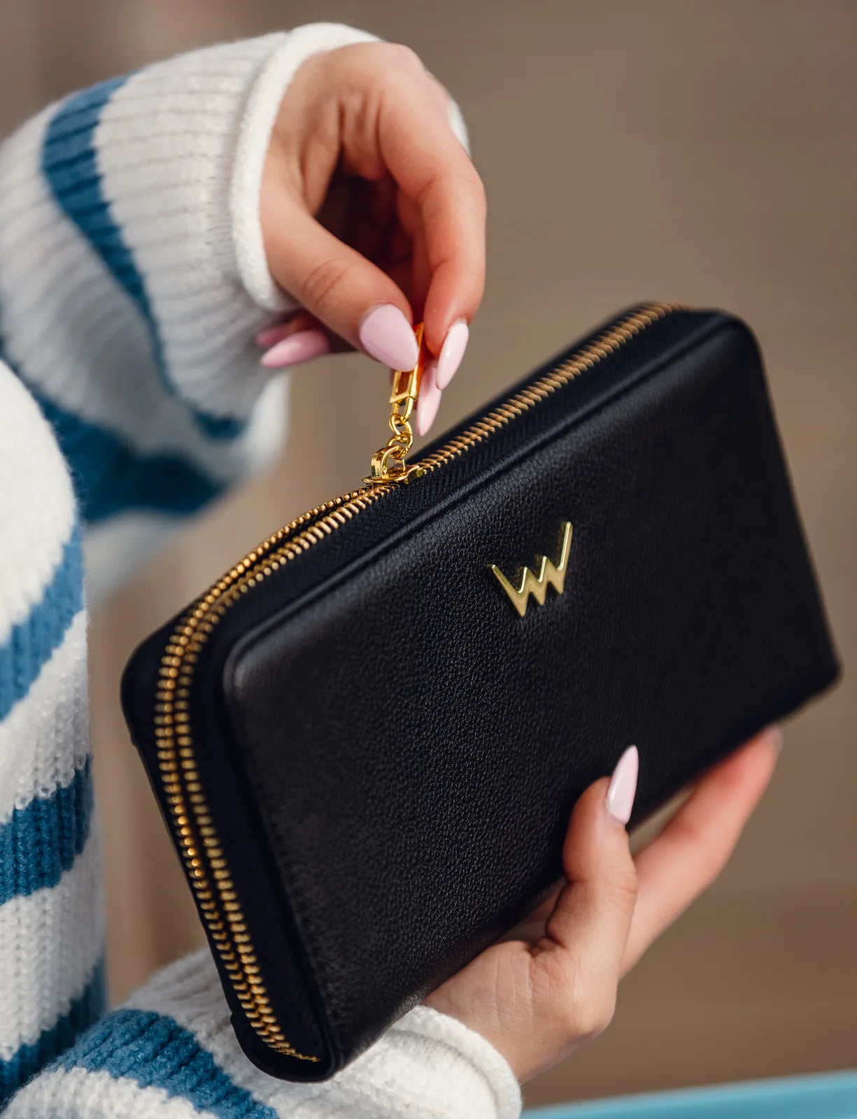 Nightie Nicci è il nostro modello iconico e nella sua versatilità è difficile da superare. Ha un design pulito ma al contempo audace, impreziosito da dettagli dorati. Ti offre ben 3 zip, per proteggere al meglio tutti i tuoi soldi e le tue carte. È, insomma, una questione eterna.