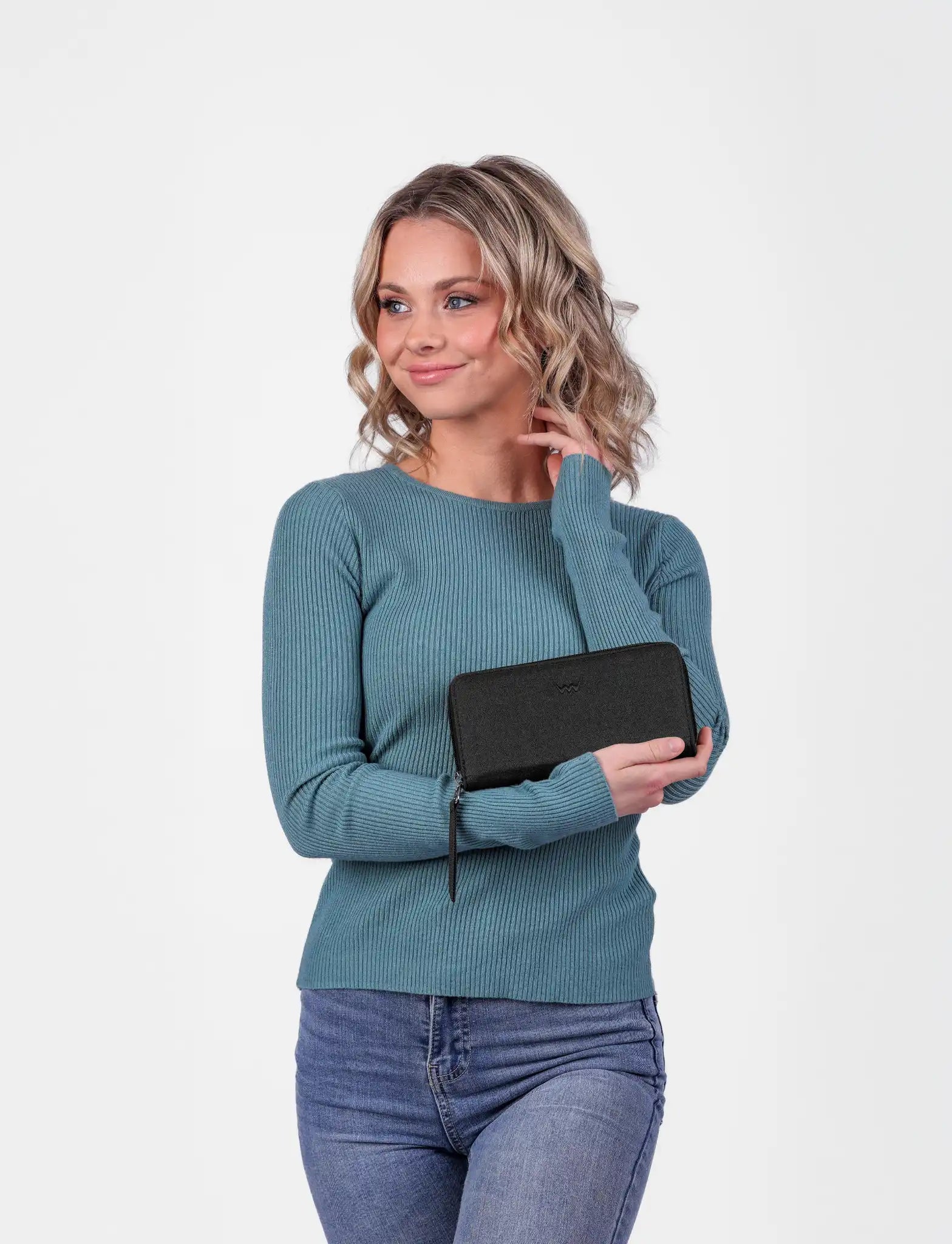 Un portafoglio con zip ispirato al popolare modello Nightie Nicci che non si limita solo ad avere un bel design. Realizzato in materiale super resistente, ti accompagnerà ogni giorno. Il logo ricamato aggiunge un dettaglio sottile che cattura lo sguardo. Pratico, affidabile e pronto a custodire tutto ciò che gli affiderai.